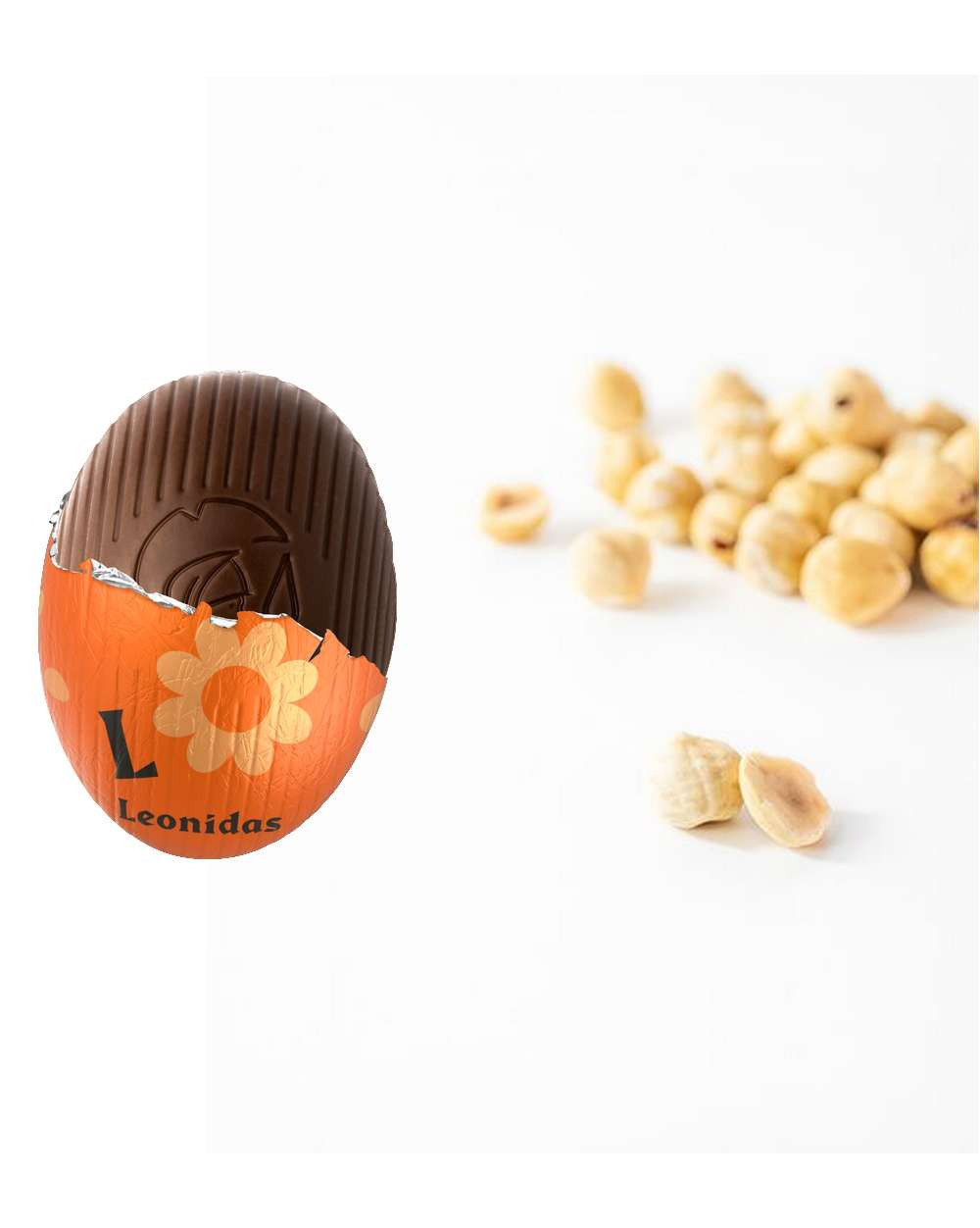 Petit œuf en chocolat noir, garni d’un praliné croustillant aux éclats de noisettes caramélisées (brésilienne). Une gourmandise de Pâques qui associe l’intensité du chocolat noir au croquant généreux de la brésilienne.