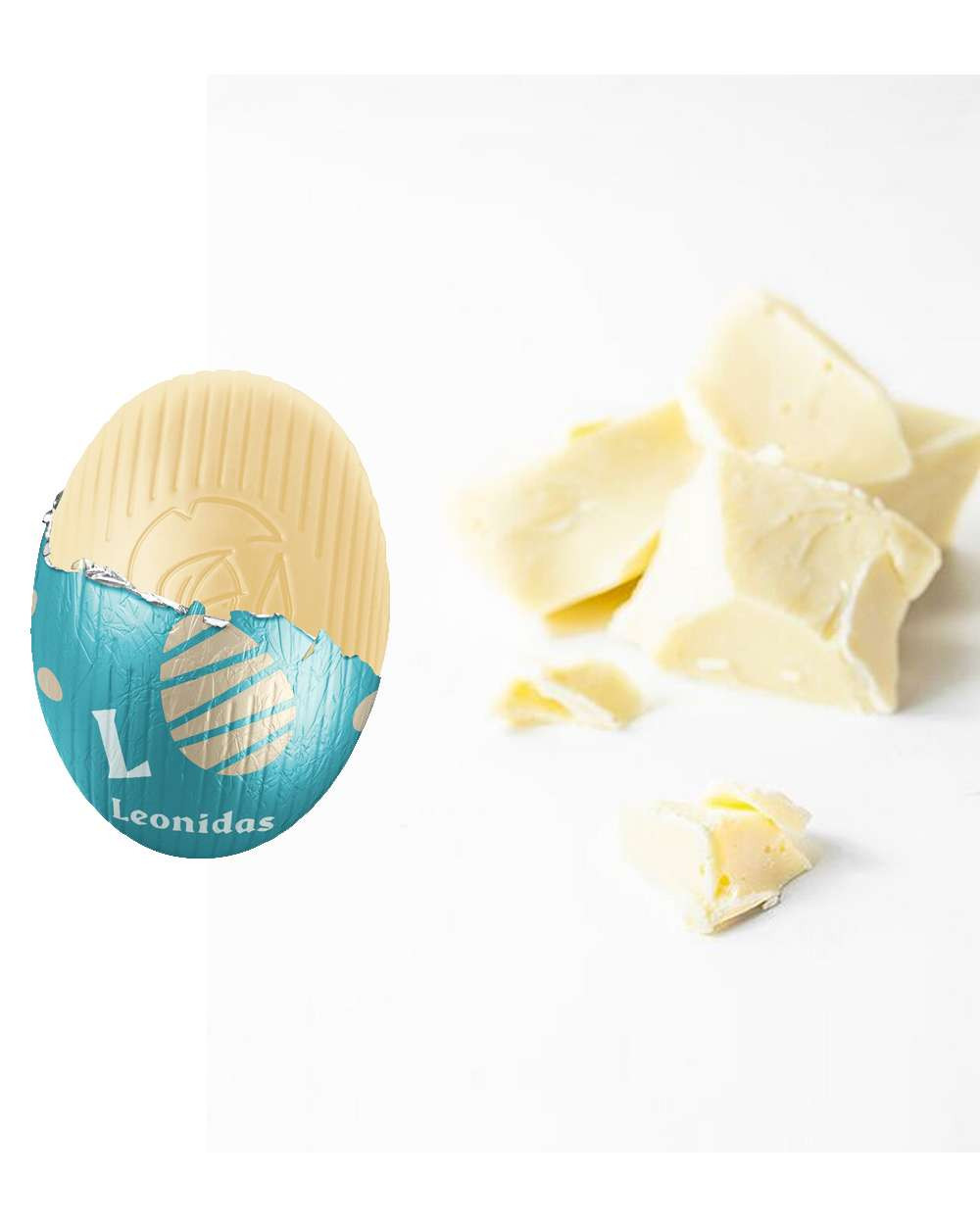 Petit œuf en chocolat blanc Leonidas, à la texture fondante et onctueuse. Une gourmandise douce et raffinée, idéale pour les fêtes de Pâques ou pour un plaisir chocolaté tout en délicatesse.