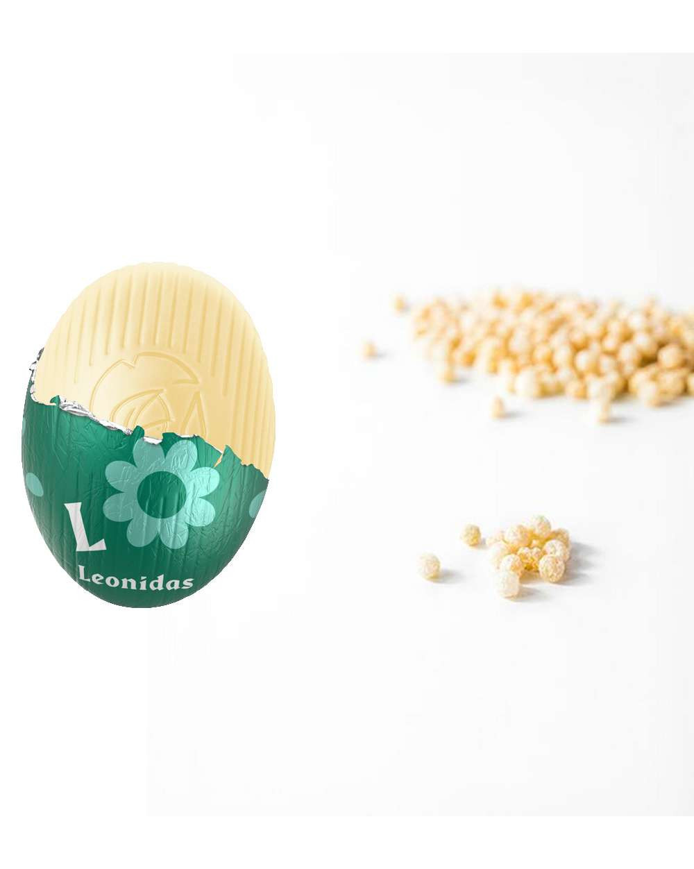 Petit œuf en chocolat blanc, garni d’un praliné croustillant au riz soufflé. Une gourmandise printanière qui associe la douceur du chocolat blanc au croquant léger du riz soufflé.