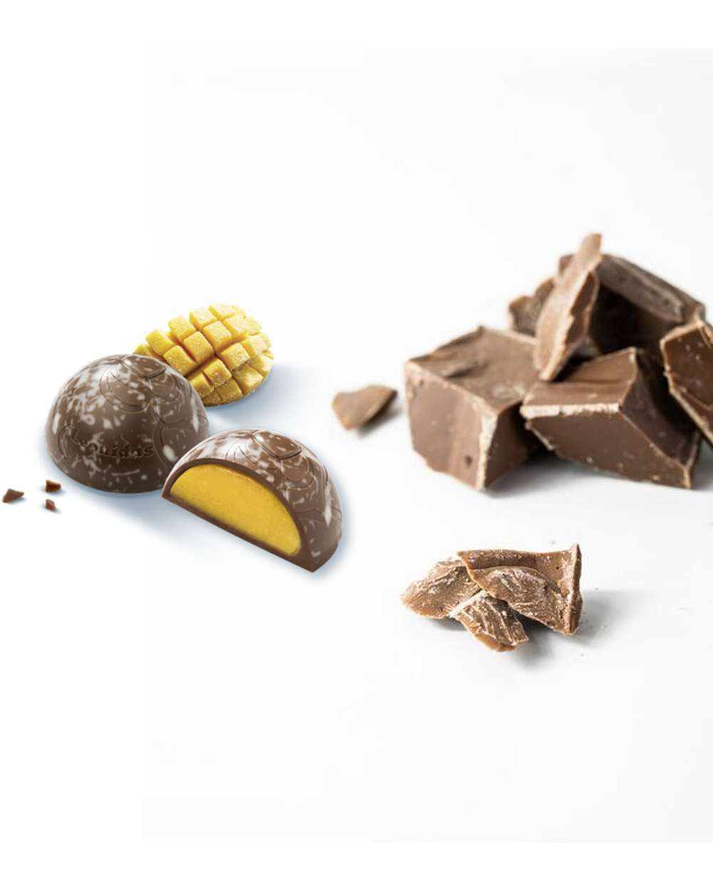 Bouchée glacée enrobée de chocolat blanc, garnie d’un cœur fruité à la mangue. Une gourmandise rafraîchissante et exotique, à savourer bien fraîche pour une expérience douce et intensément fruitée.