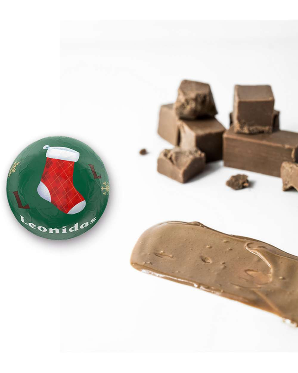 Praline en forme de boule de Noël, enrobée de chocolat noir et garnie d’un praliné fondant aux noisettes. Une création festive et intense qui marie la puissance du chocolat noir à la douceur du praliné Leonidas.