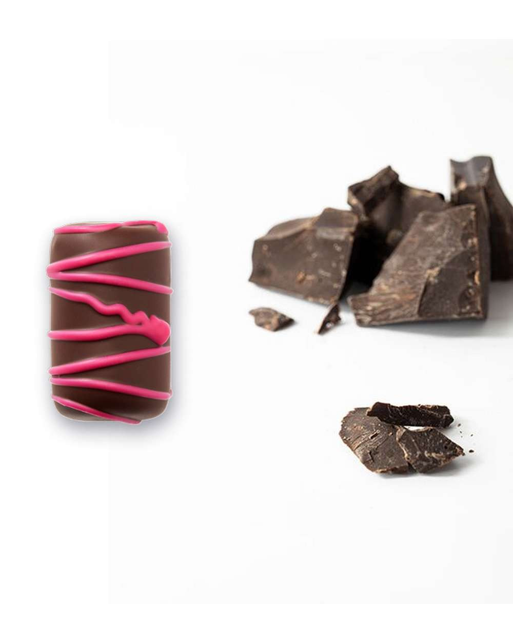 Praline enrobée de chocolat rose, garnie d’un praliné tendre à la texture fondante. Une création délicate et originale qui associe la douceur du praliné à la note fruitée et légèrement acidulée du chocolat rose.