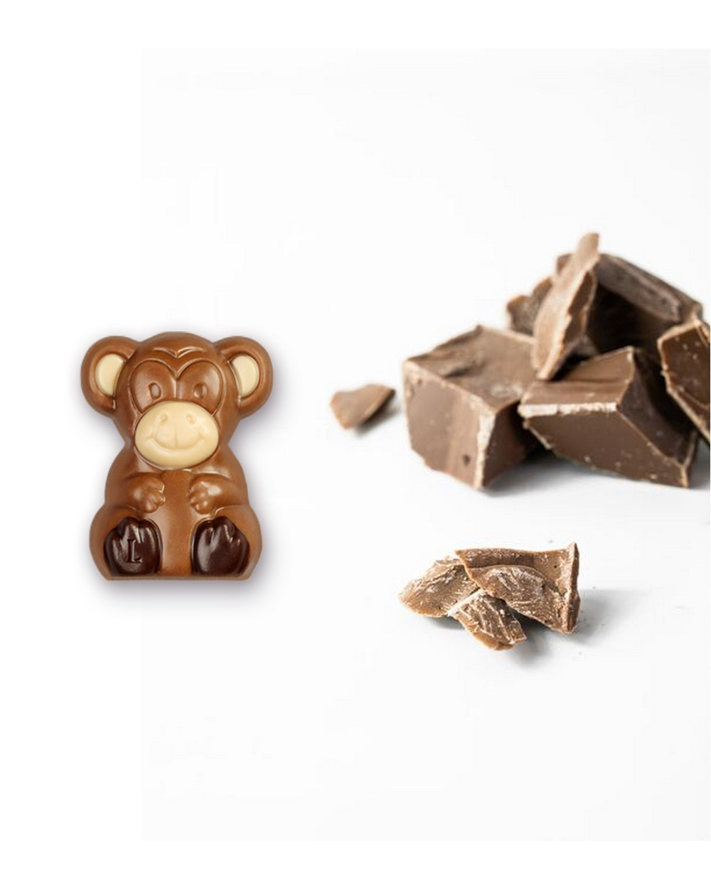 Petits chocolats amusants en forme de singe, réalisés en chocolat au lait Leonidas. Une douceur rigolote et fondante, parfaite pour les enfants et les amateurs de chocolat belge au goût délicat.