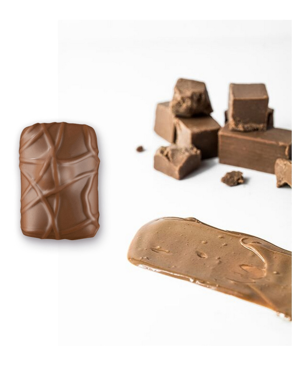 Praline enrobée de chocolat lait, renfermant un praliné lisse surmonté d’une noisette entière grillée.