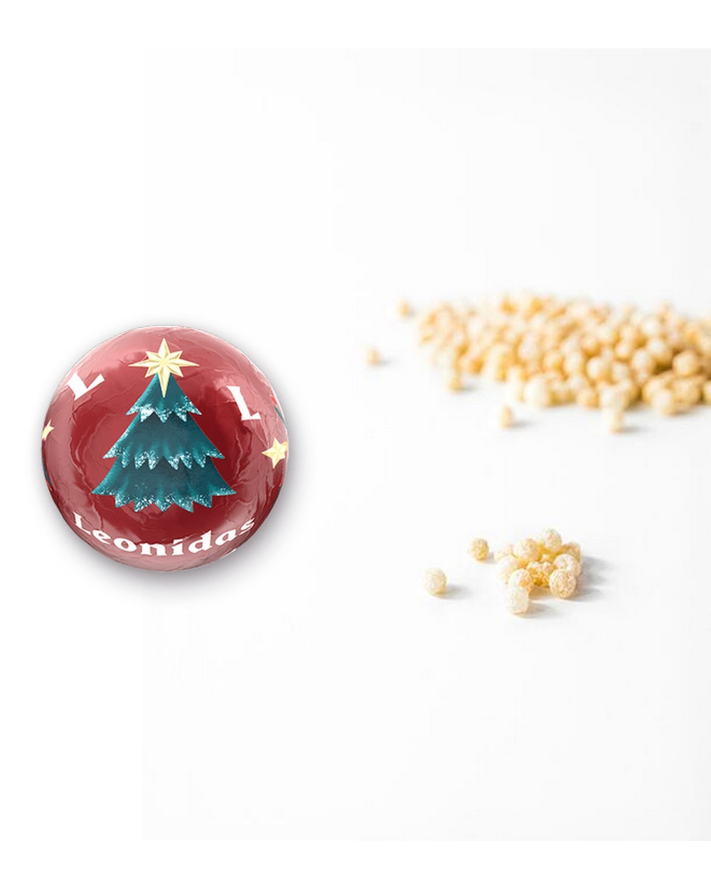 Praline en forme de boule de Noël, enrobée de chocolat au lait et garnie d’un caramel fondant légèrement salé. Une alliance parfaite entre la douceur du chocolat au lait et la touche subtile de fleur de sel pour un plaisir festif et raffiné.
